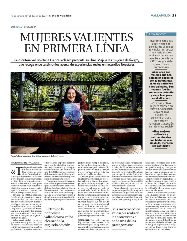 La periodista Franca Velasco rinde en este libro un hermoso —y más que necesario— homenaje a unas profesionales de las que nadie habla y a las que, sin embargo, todos deberíamos admirar: las bomberas forestales. Porque, aunque en los reportajes parezca que todas las personas que cuidan de nuestros bosques son hombres, también hay mujeres. Y se baten el cobre como las que más.